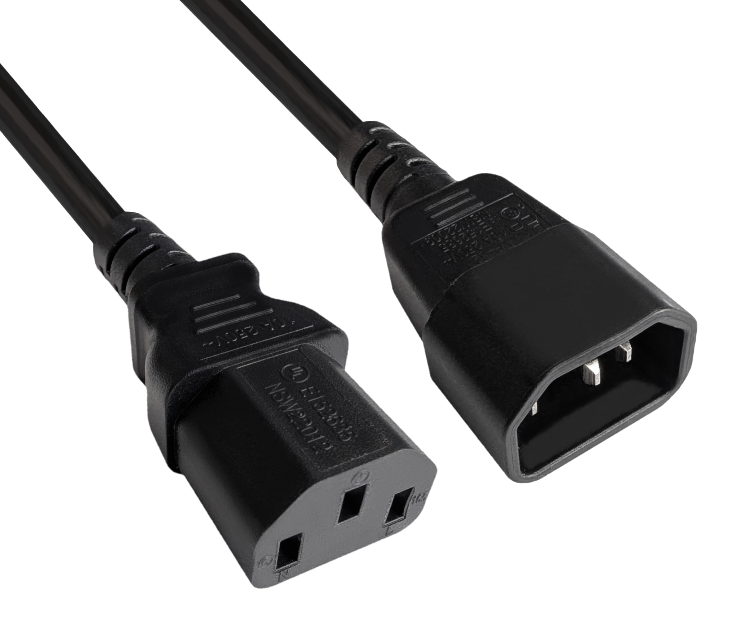 - Steckverbinder: IEC 60320 C13 Kupplung auf IEC 60320 C14 Stecker (Kaltgeräte-Verlängerung)