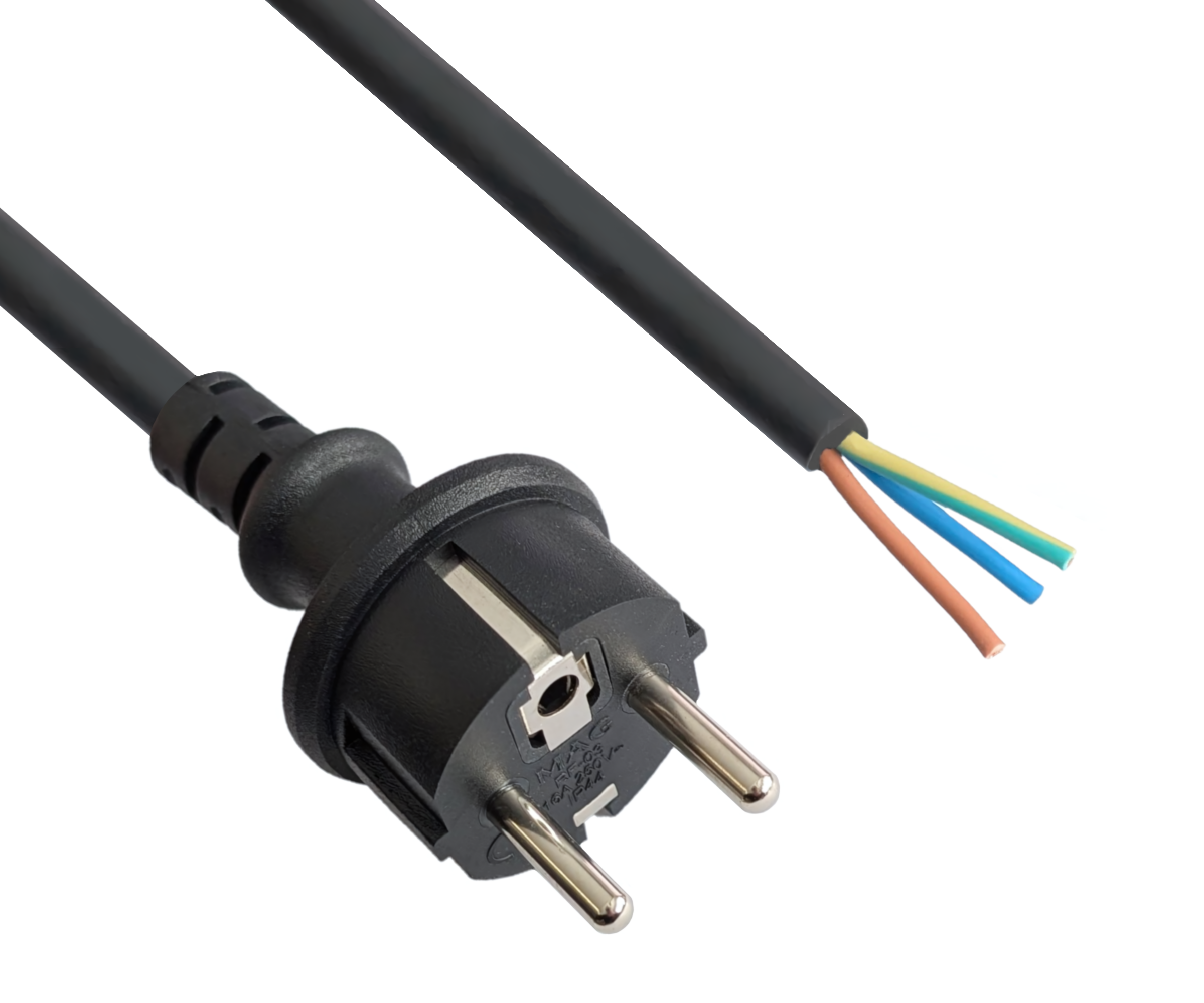 1x Netzanschlussleitung 10,00 m – Schutzkontakt-Stecker gerade auf offenes Ende, ca. 30 mm abgemantelt