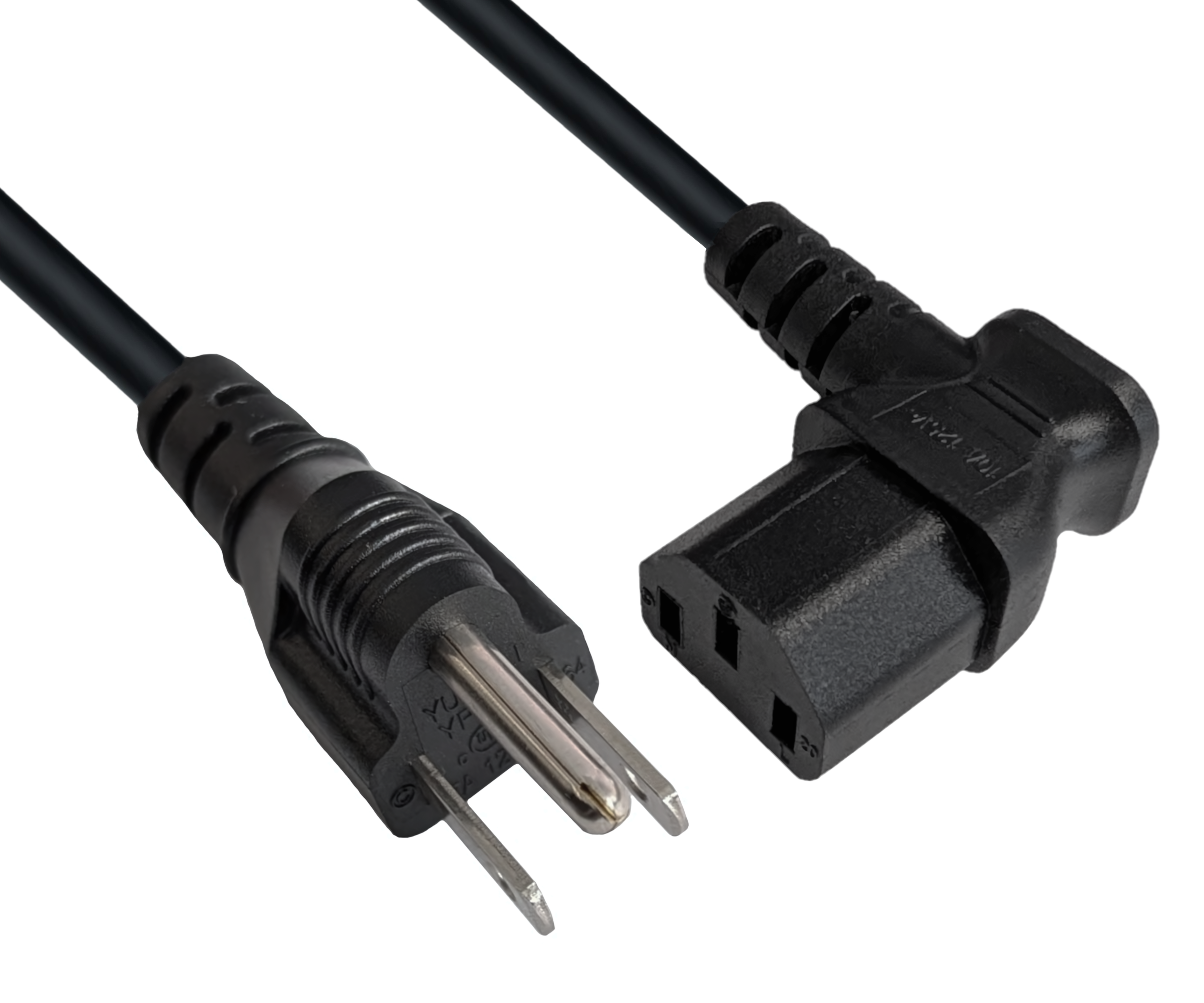 1 × B tipo maitinimo kabelis (NEMA 5-15P) su IEC 60320 C13, šone pasuktas 90° kampu, 1,80 m, juodos spalvos (nefasuotas).