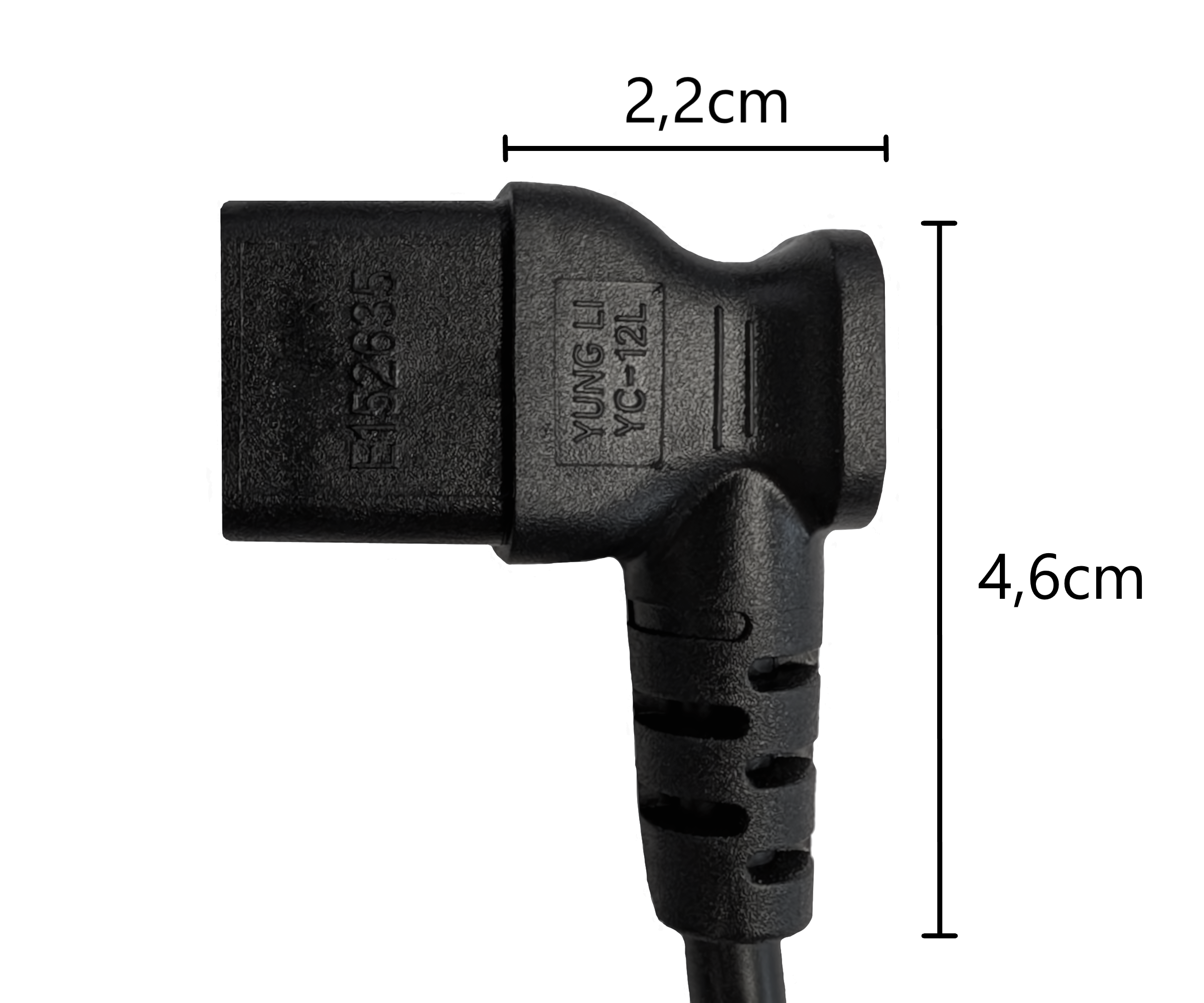 - C13 kištukas iš šono pasuktas 90° kampu - optimizuotas ankštoms montavimo situacijoms ir galinių įrenginių jungtims