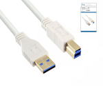 Kabel USB 3.0 z wtyczką A na wtyczkę B, pozłacane styki, biały, 2,00 m, plastikowa torba